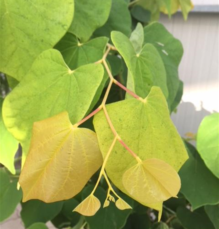 Der Kanadische Judasbaum 'Rising Sun' ist sommergrün.