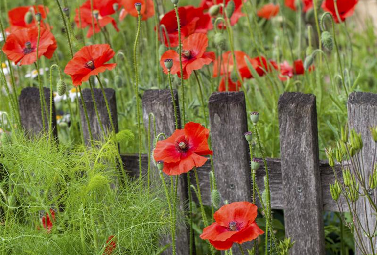 Damit kommen wir zu den konkreten Wirkungsweisen, die den verschiedenen Farben innewohnen. Die stärkste Wahrnehmung kann Rot für sich verbuchen. Mit seiner automatischen Signalfunktion wirkt es großflächig eingesetzt zu aufdringlich. Aber geschickt platziert, kann die Farbe wunderbare aktivierende Akzente setzen. Die intensiven Blüten des Mohns, die korallenroten Früchte der Berberitze, das herrliche Laub der Blutbuche, der exotische Feuerahorn und die ausdrucksstarken Triebe des Hartriegels im Winter sind einige Beispiele.