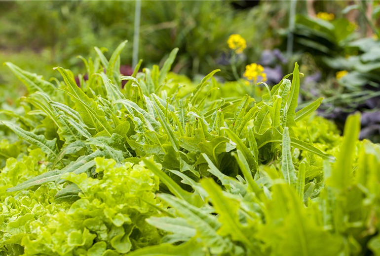 Ein bunter Salat auf dem Balkon mit Urban Gardening