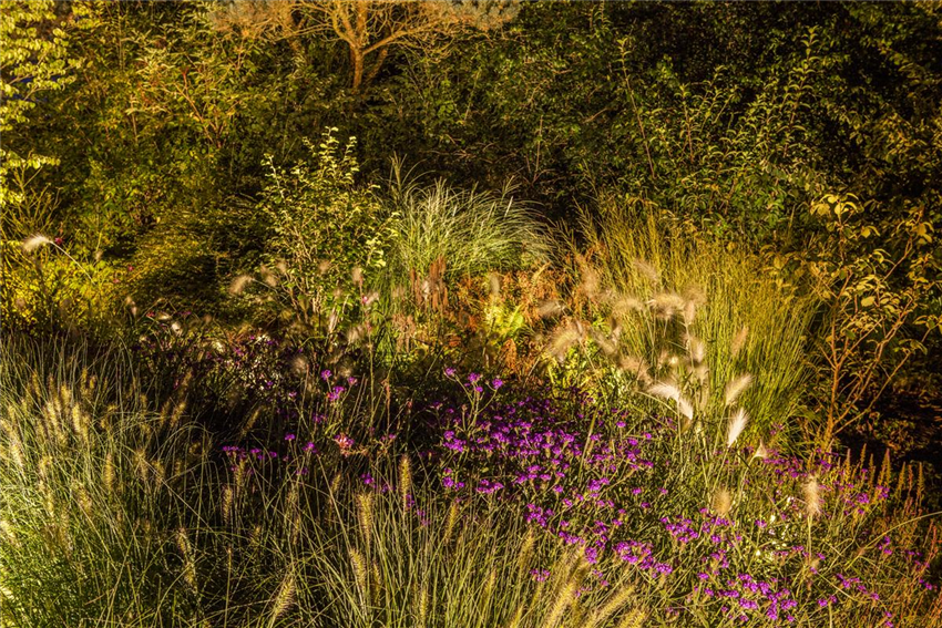 Wer professionell vorgehen will, stattet seinen Garten mit verschiedenen Beleuchtungsmöglichkeiten aus, die aber zu verschiedenen Jahreszeiten unterschiedlich eingesetzt werden, keineswegs alle auf einmal. Im Frühling kann der erste Blütenaustrieb angestrahlt werden, im Sommer bieten sich farbenfrohe Blütenstände an. Verschiedene Blattstrukturen sind ebenfalls dankbare Elemente, etwa die gefiederten Wedel eines Farns oder das effektvolle Laub eines Ahorns. Im Herbst verstärkt eine Beleuchtung die fantastische Verfärbung der Laubbäume, aber auch die optische Wirkung der typischen Früchte und Beeren. Im Winter lohnt sich das Anstrahlen der immergrünen Pflanzen und vor allem der Winterblüher. Auch klare und einfache Strukturen wie bereifte Äste haben ihren eigenen Reiz und können gut einmal in einem anderen, nämlich künstlichen, Licht erscheinen.