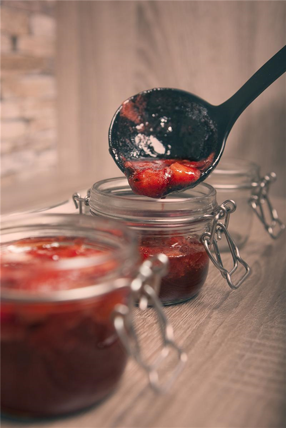 Einer der großen Vorteile beim Selbstkochen von Marmelade und Konfitüre ist, den Zuckergehalt zu steuern. Viele Leute schätzen es, wenn sie mehr Frucht und weniger Industriesüße enthält. Bevor man den Pürierstab schwingt, kann man einige schöne Früchte zurückhalten, um sie in kleinen Stücken der Marmelade beizufügen. Das sieht gut aus und gibt dem Ganzen einen knackigen Pfiff. Beliebte Zutaten sind Zimt und Kardamom. Aber auch eine dezente Ingwernote und deutlicher Vanillegeschmack erfreuen sich großer Beliebtheit. Ein Schuss Alkohol macht die Früchtchen ebenfalls interessanter für den genüsslichen Verzehr. Das erreicht man mit Likören, aber auch mit ein paar Tropfen Schnaps wie zum Beispiel Gin. Kreativen Einfällen sind hier keine Grenzen gesetzt. Hauptsache, das Ergebnis schmeckt!