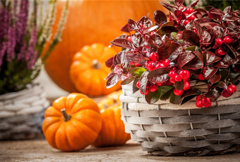 Das amerikanische Thanksgiving wird auch bei uns gern als Grund für eine üppige Deko genommen. Jetzt ist der Kürbis unverzichtbar. Wie wär’s mit einem Zuber oder einer alten Zinkwanne im Windfang vor dem Hauseingang? Maiskolben, kleine Bündel von Ähren und große Sonnenblumenblüten dazu und am besten noch eine riesige Kerze hineinstellen. Lampionblumen, große Schleifen und viel Grün dazwischen runden das Bild ab. Gäste freuen sich auch über eine Lichterkette, die sich durch das Vielerlei aus Mutter Natur zieht. Nun heißt es alles noch genießen, bevor der erste Frost kommt.