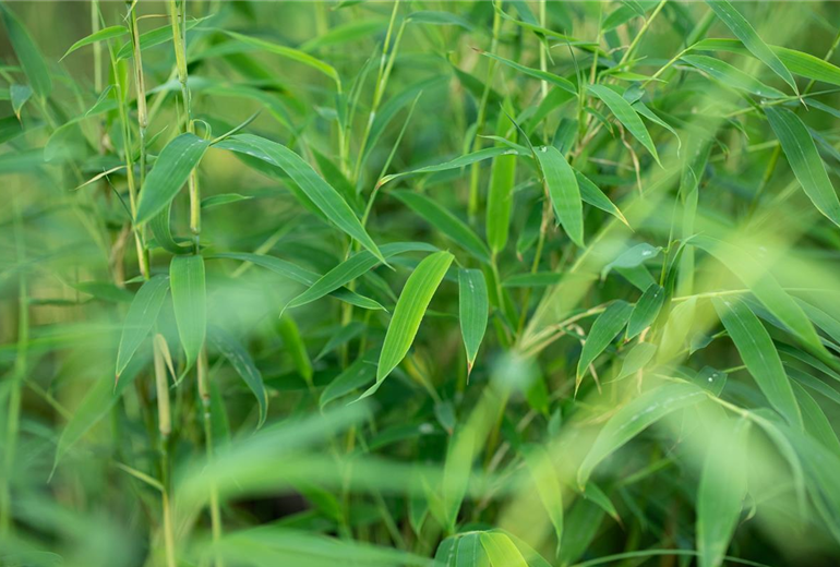 Auch Bambus kann als Blattschmuckpflanze im Garten imposant wirken. Als Mitglied der Familie der Süßgräser ist der Bambus sowohl mit Getreidearten wie auch mit Riesengräsern verwandt. Mehr als 1000 Bambussorten garantieren, dass jeder Gartenbesitzer Pflanzen findet, die in seinen Garten passen. Es gibt Arten des Riesenbambus, die bei optimalen Wachstumsbedingungen mehr als 40 Meter groß werden und damit Bäumen Konkurrenz machen. Kleine Arten des Zwergbambus werden hingegen nur 1,5 Meter hoch. Bambus ist ursprünglich in Südostasien beheimatet und gilt dort als Kulturpflanze. Sie wird sowohl als Nahrungsmittel und ebenfalls als Grundstoff für die Bauindustrie verwandt. Bambus wächst im Garten an nahezu allen Standorten. Er hat wenig Ansprüche an die Bodenbeschaffenheit. Die Pflanze liebt warme und sonnige sowie windgeschützte Standorte.