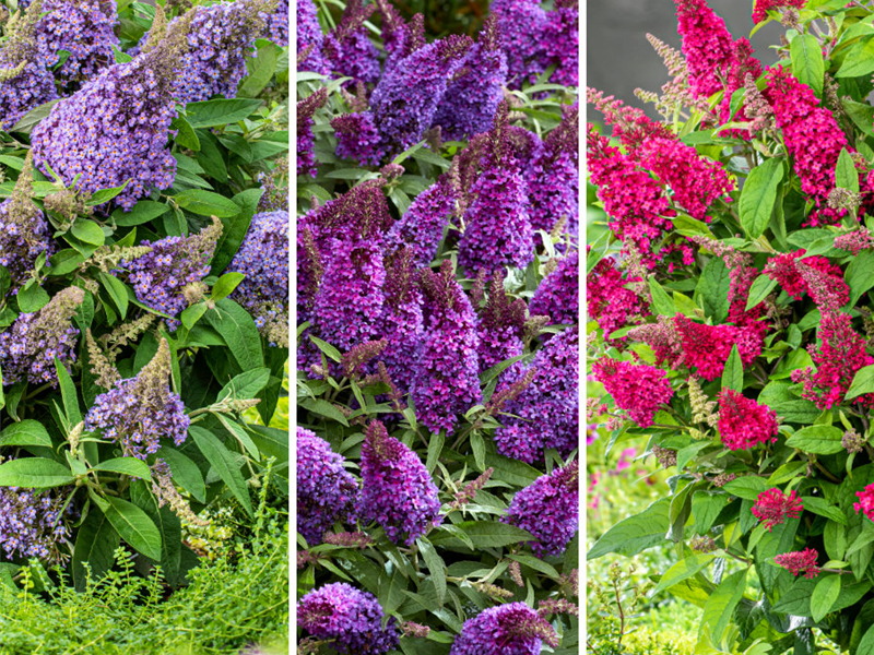 Neu bei uns im Sortiment | Buddleja Butterfly Candy® | Zwergschmetterlingsflieder in drei Sorten – Little Ruby, Lila Sweetheart und Little Pink.